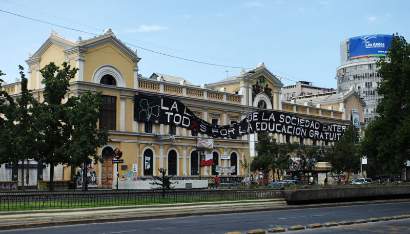 In 1843, the Universidad de Chile opened its doors to provide quality higher education. Its first building, located on Alemeda, is a beautiful structure full of history. It has now become the pinnacle for protestors, graffitied with frustration, by those demanding a major overhaul of Chile’s current higher education system. What they’re seeking is free education for todos, all.